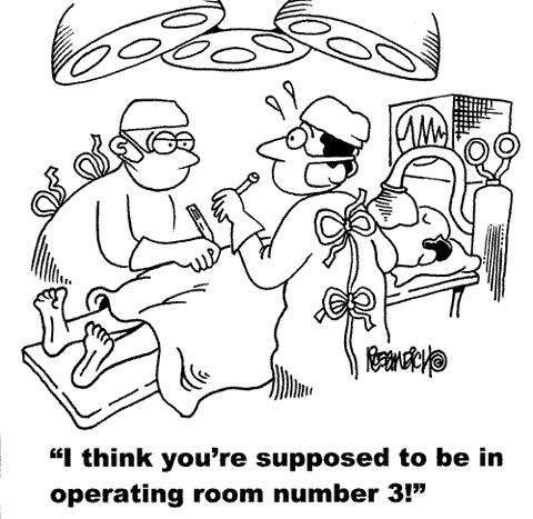 I had to have surgery on my knee; before being put ‘under’ a nurse wrote on one knee, “This Leg”, and on the other knee, “Not This Leg”. Ever wonder why surgeons have this done these days? The liabilities incurred for past mistakes became too much to bear. Communication such as, “This Leg”, and “Not This Leg leaves little room for misinterpretation.