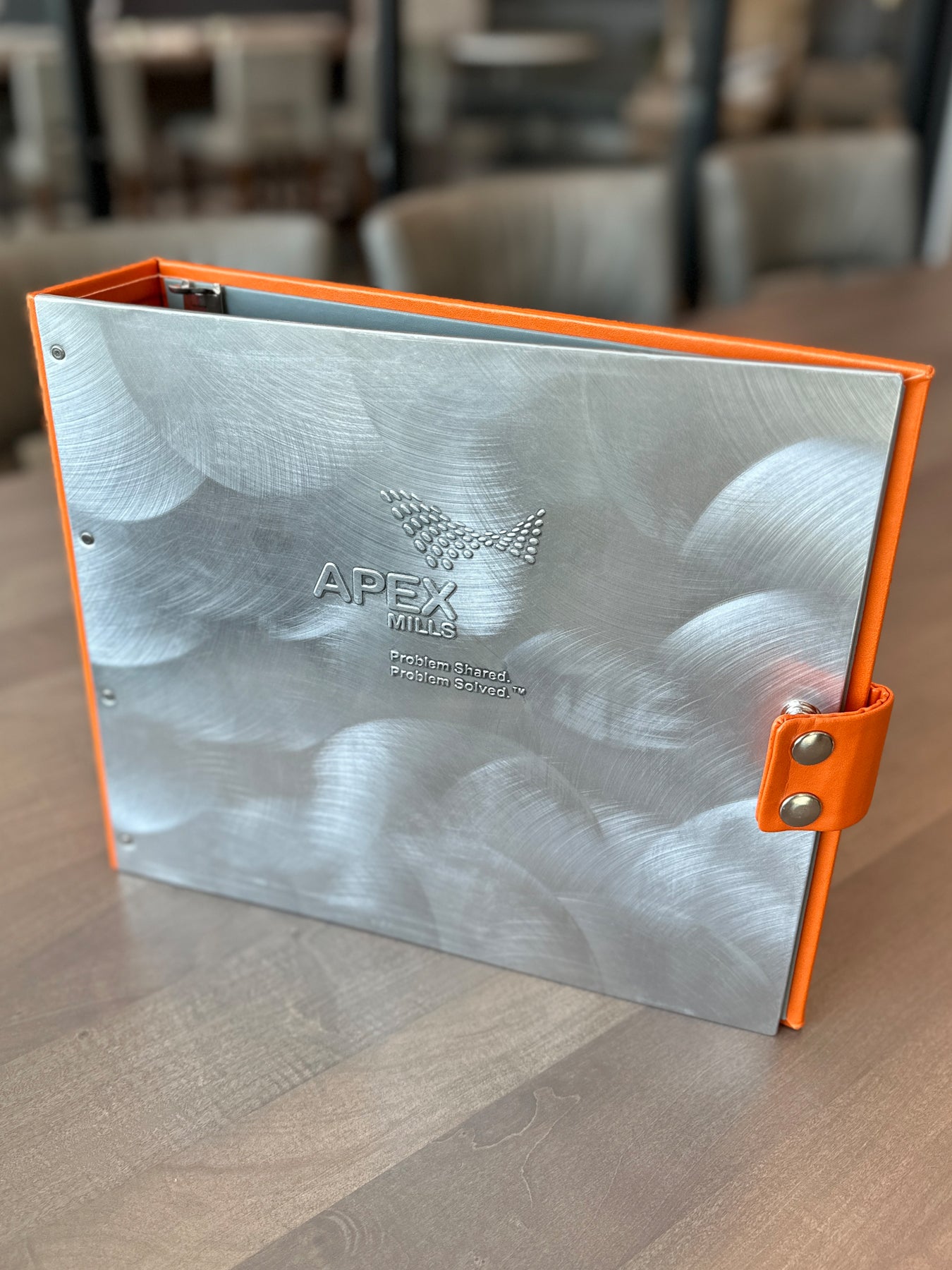 Tagged with: aluminum, binder, custom menu cover, fabric mill, faux leather, financial, handcrafted, metal, orange, project-management, sales and consulting, snaps,