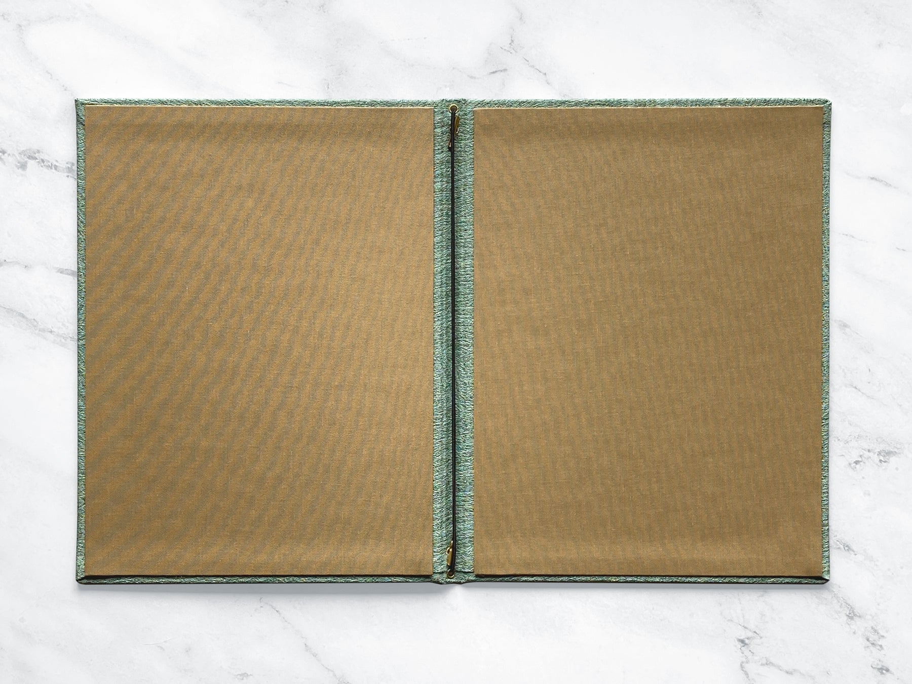Tagged with: aqua, custom menu cover, handcrafted, menu, restaurant, vinyl,