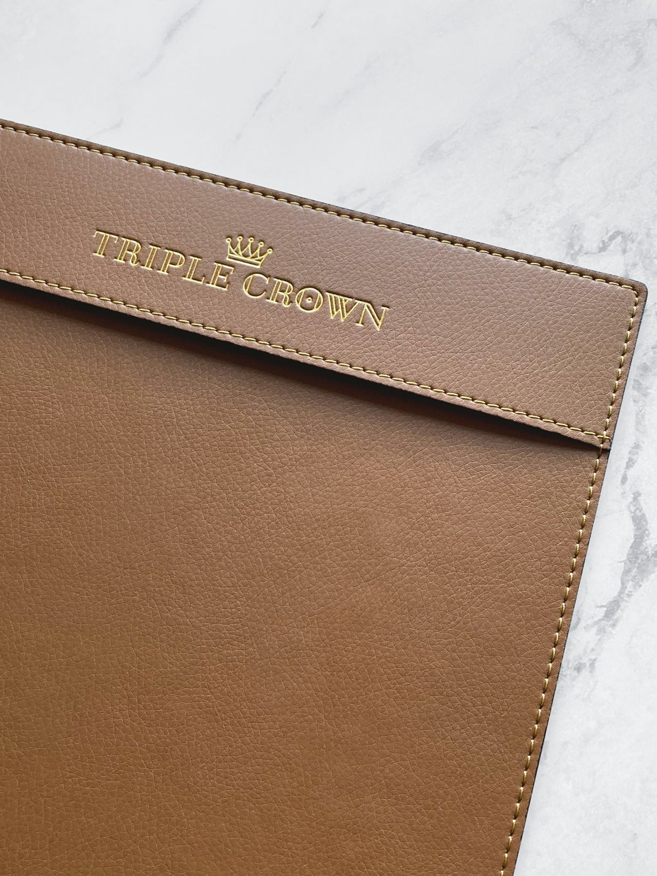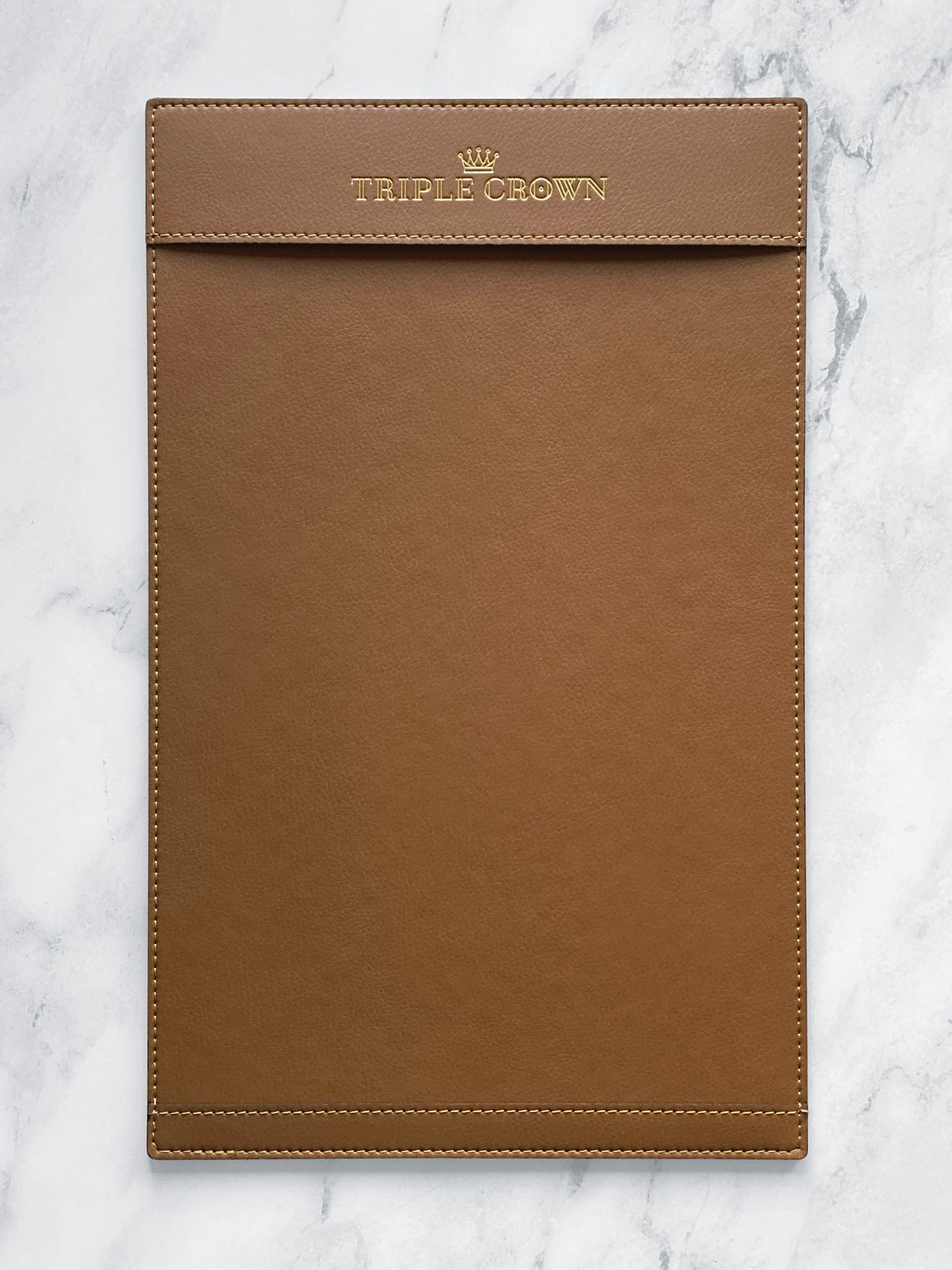 Brown Faux Leather Single Panel Menu Cover: Triple Crown