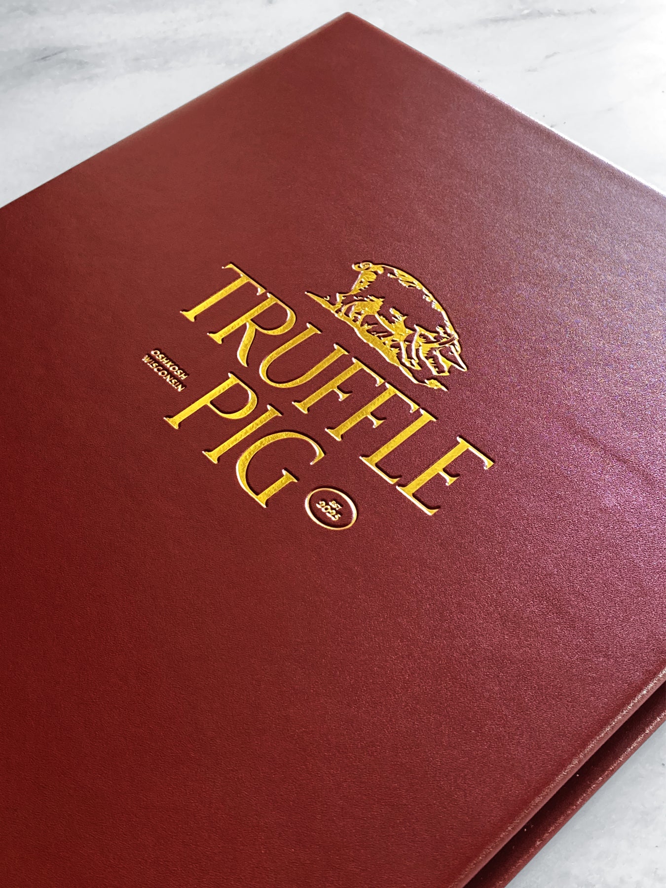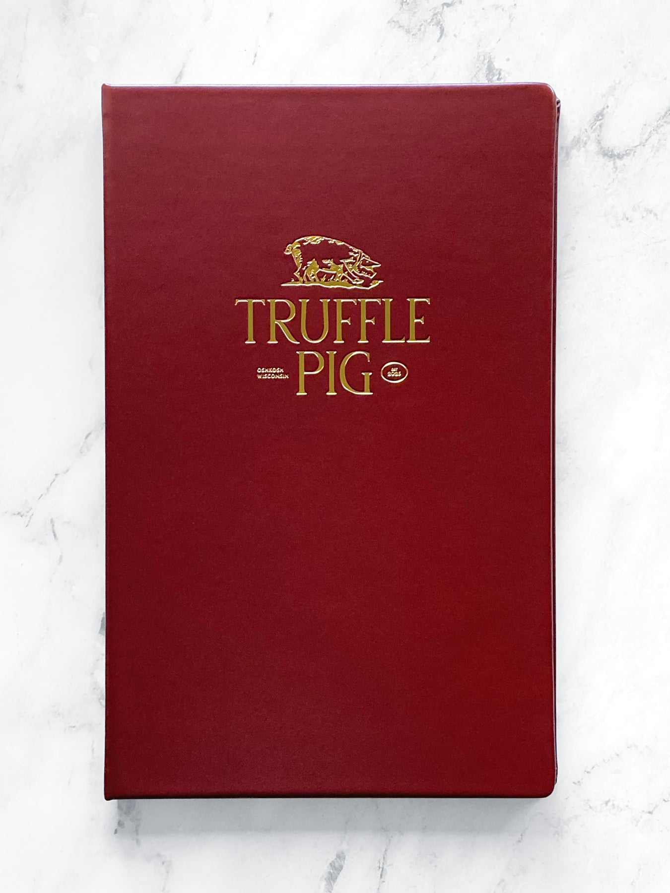 Burgundy Faux Leather Menu Cover: Truffle Pig