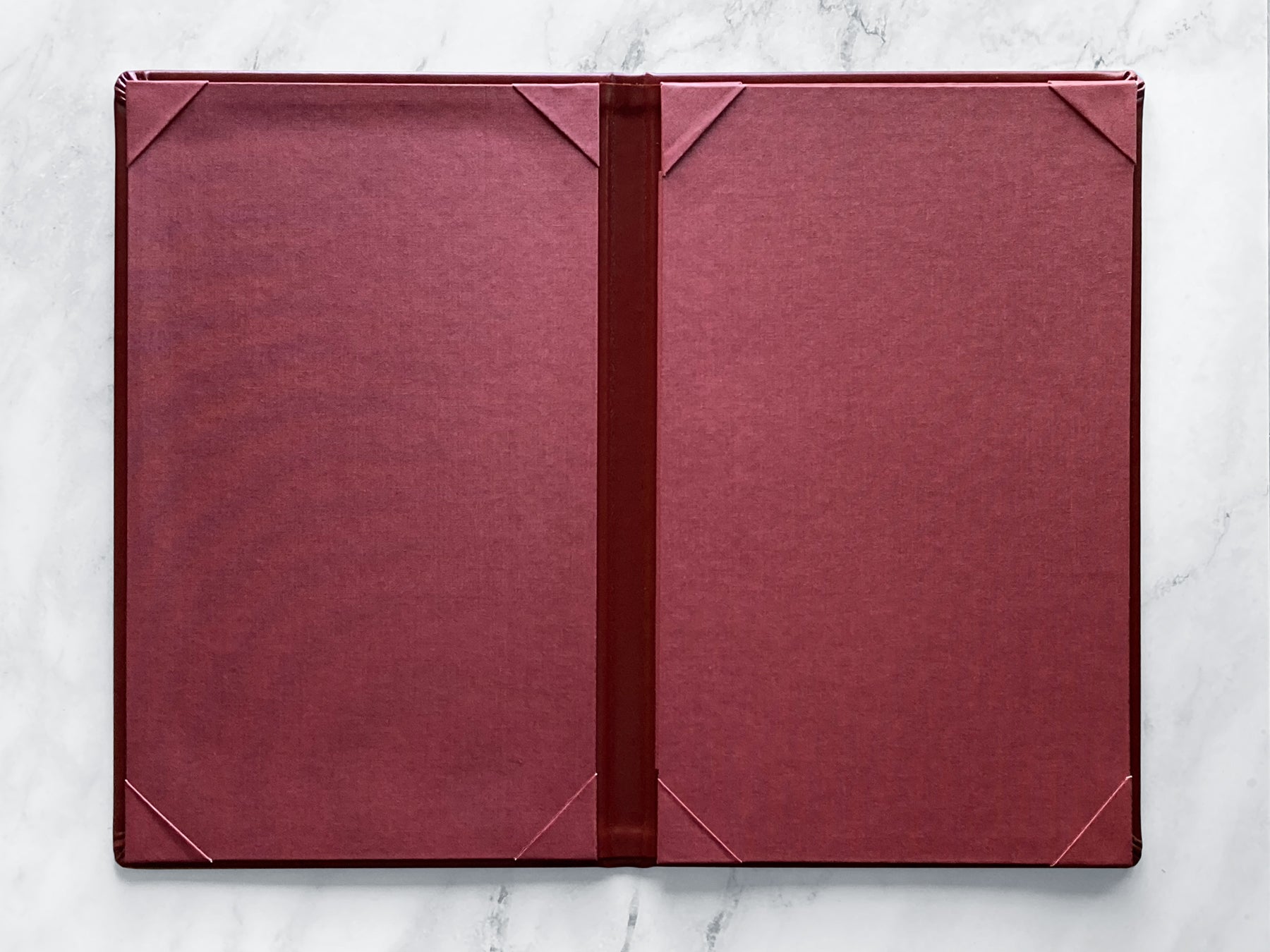 Tagged with: burgundy, custom menu cover, faux leather, handcrafted, menu, restaurant,