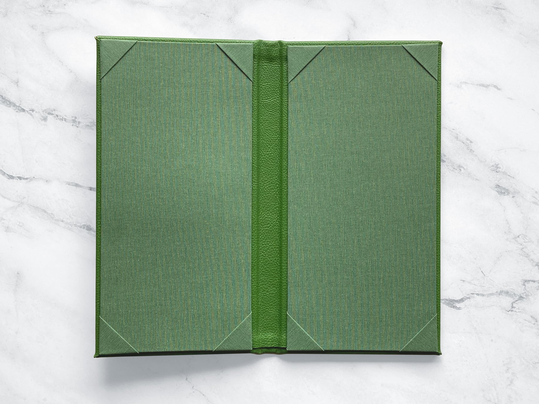 Tagged with: astro turf, custom menu cover, faux leather, green, handcrafted, menu, restaurant,