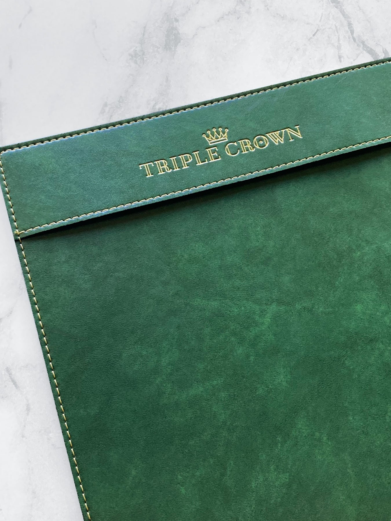 Green Faux Leather Single Panel Menu Cover: Triple Crown